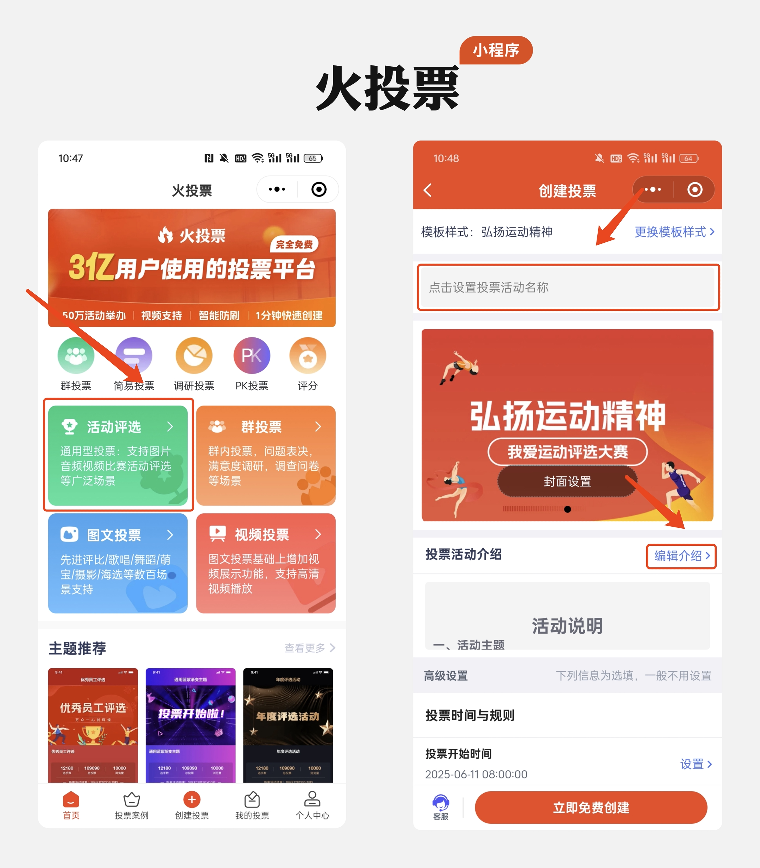 进入小程序后,首页通常会有明显的「创建投票」按钮,点击后按提示填写核心信息,每一步都有清晰引导: