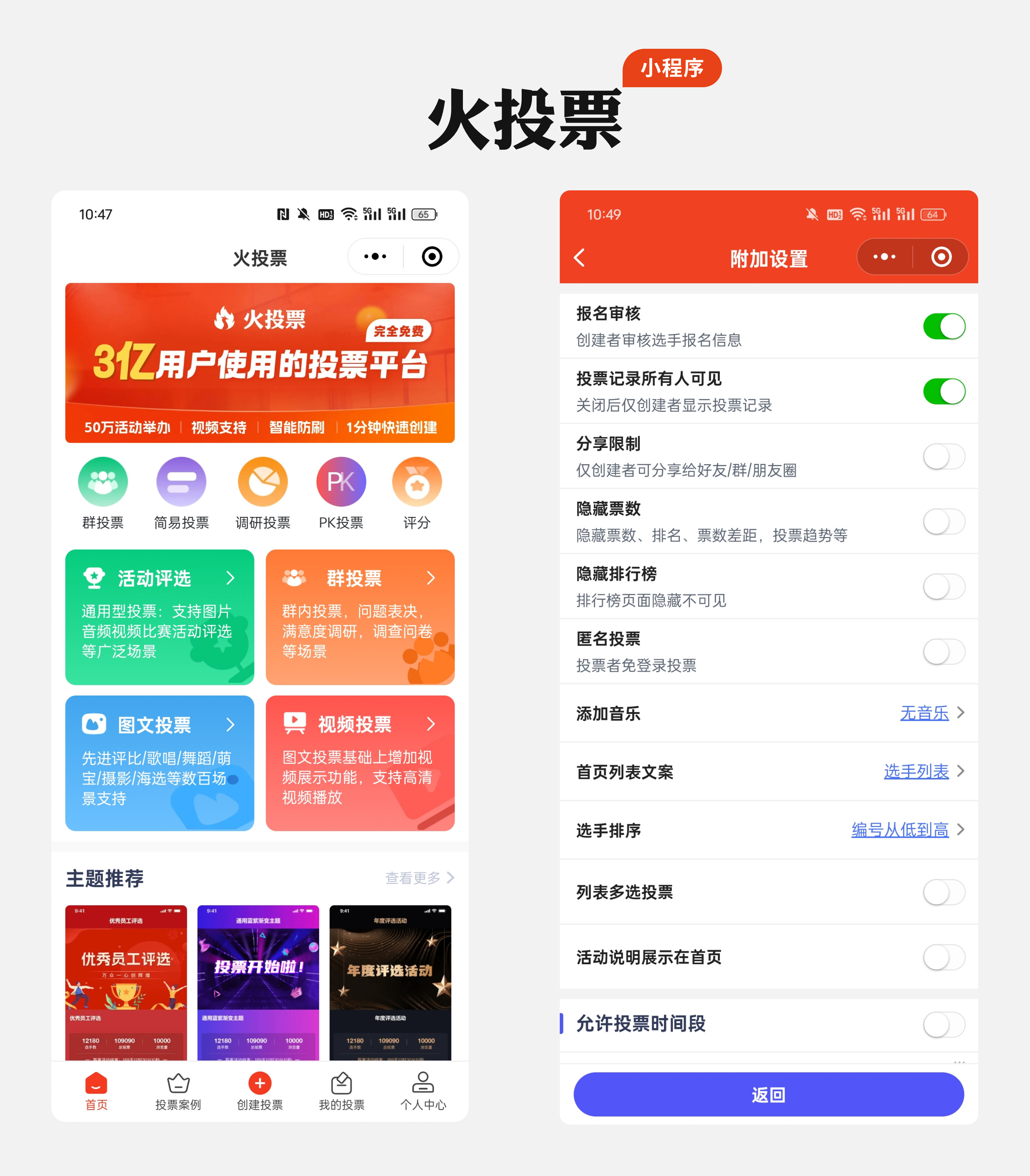 进入小程序主页面后,点击底部的 “创建投票” 按钮,会看到多种投票类型可选,比如 “图文投票”“视频投票” 等,你可以根据自己的需求选择对应的类型。比如选优秀员工时,适合用 “图文投票”,既能展示员工照片。