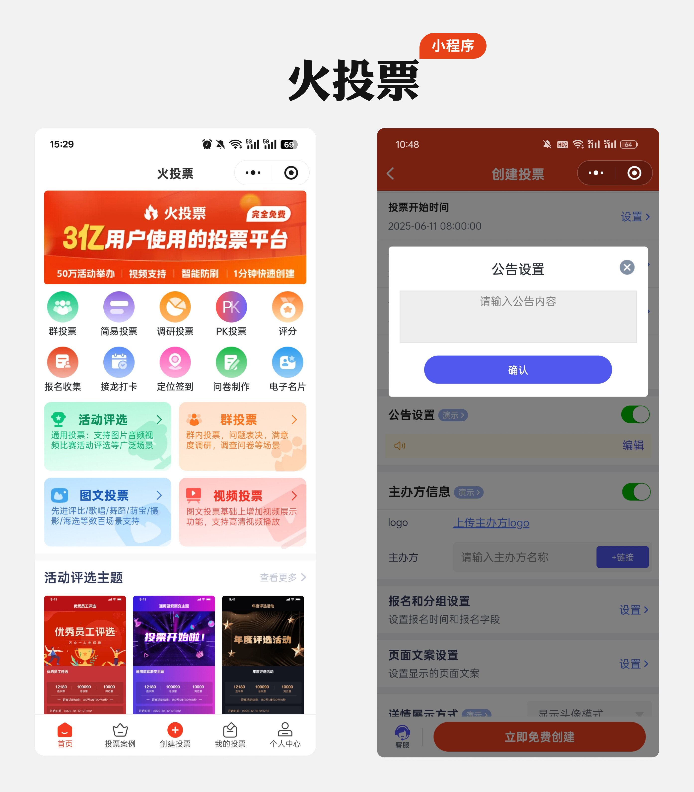登录后点击右下角【创建投票】,进入编辑页填写核心信息,这步直接影响参与度,重点做好 3 点: