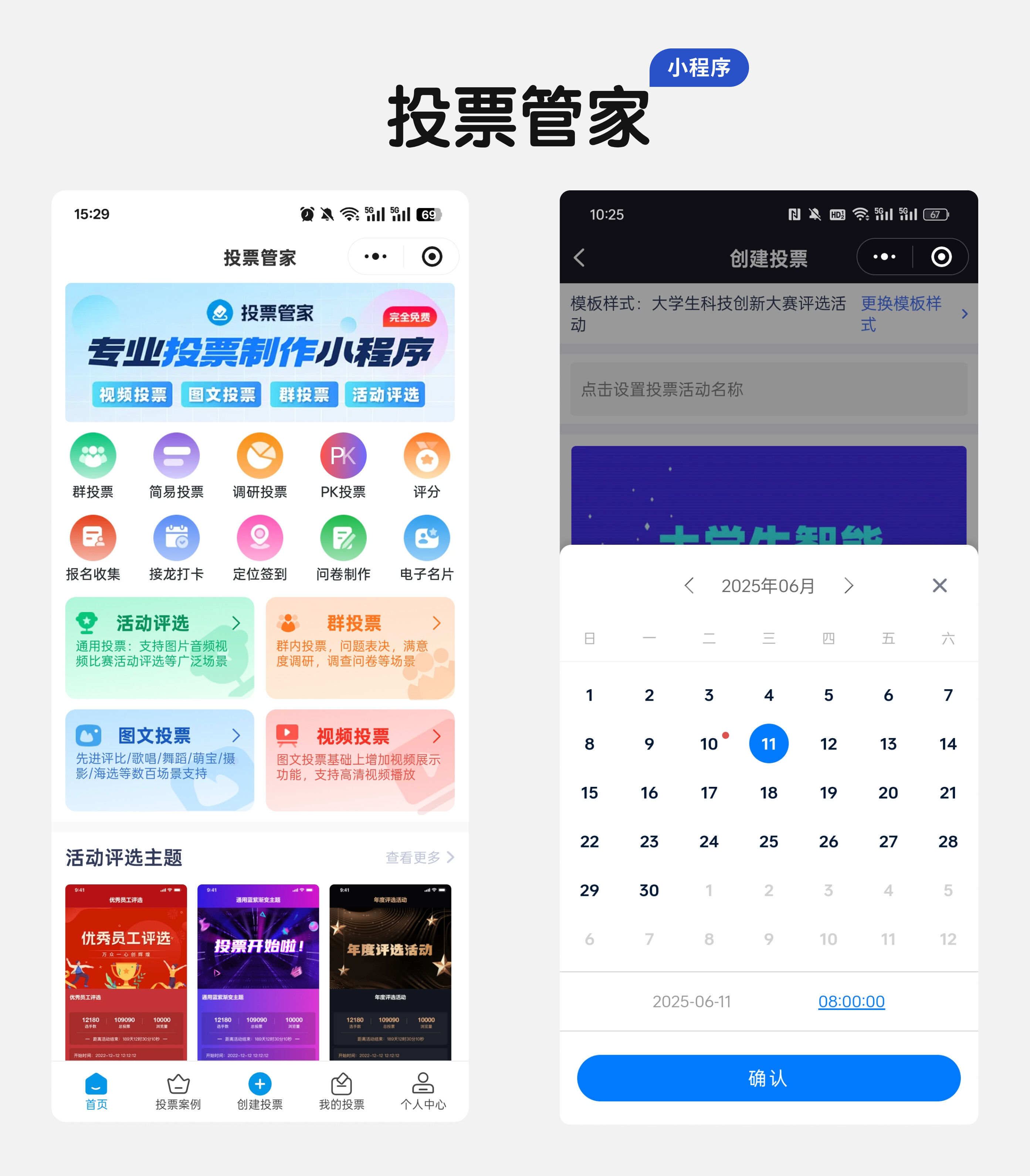 打开微信,在顶部搜索框输入“投票管家”,认准官方认证的小程序图标(别点错广告哦!)。点击后微信一键授权登录,无需填写手机号、验证码,直接进入活动创建页面。这一步就像打开游戏界面——简洁的模板库、清晰的操作按钮,连“科技小白”都能秒懂!
